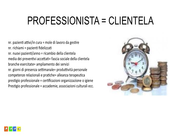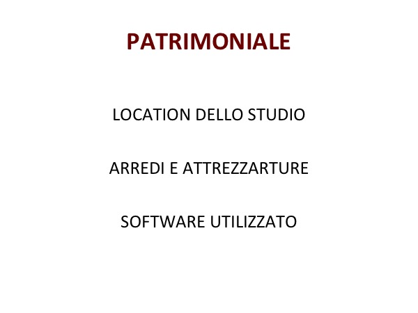 I beni strumentali dello studio sono il secondo elemento da valorizzare che insieme alla clientela va a determinare il valore complessivo dell'attività. Tenere lo studio allineato agli standard di mercato con una tracciabilità dei pazienti tramite un software gestionale è importante per la giusta valorizzazione.
