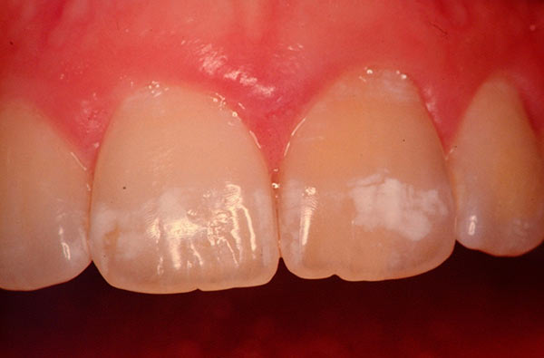 Comprende la fluorosi, l'assunzione di tetraciclina, traumi, Amelogenesi imperfetta, disturbi ematici, carenze vitaminiche e disturbi di metabolismo.