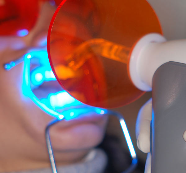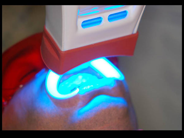 La Food and Drug Administration (FDA) negli Stati Uniti, ha approvato tre tipi di laser che possono essere utilizzati invece di lampade tradizionali per lo sbiancamento: il laser di argon, laser CO2 e il laser a diodi. Durante l' emissione della luce laser occhiali protettivi specifici devono essere indossati dal paziente, dall'assistente e dal'operatore, anche da chiunque sia presente nello studio odontoiatrico. 22,23.