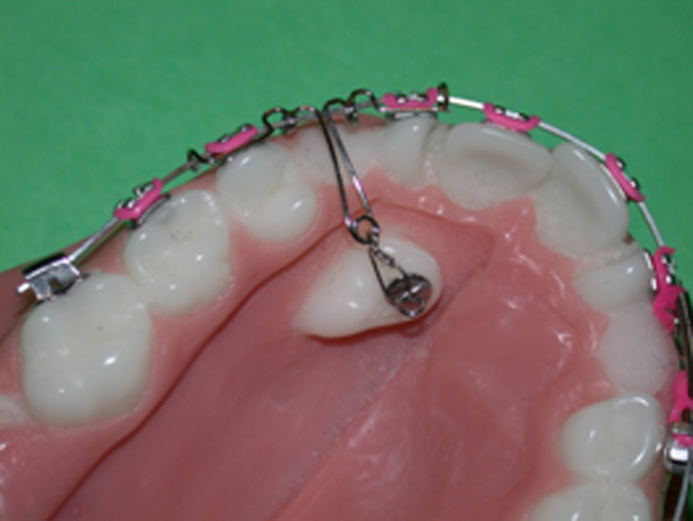 A new appliance to apply a vertical pull on lingually impacted canines, the Kilroy Spring I, has been recently introduced. This new system is compliance-free and allows to produce directional forces. The aim of this work is to evaluate Kilroy Spring I clinical effects, confirming its ability to pull out lingually impacted canines closely located to adjacent roots.